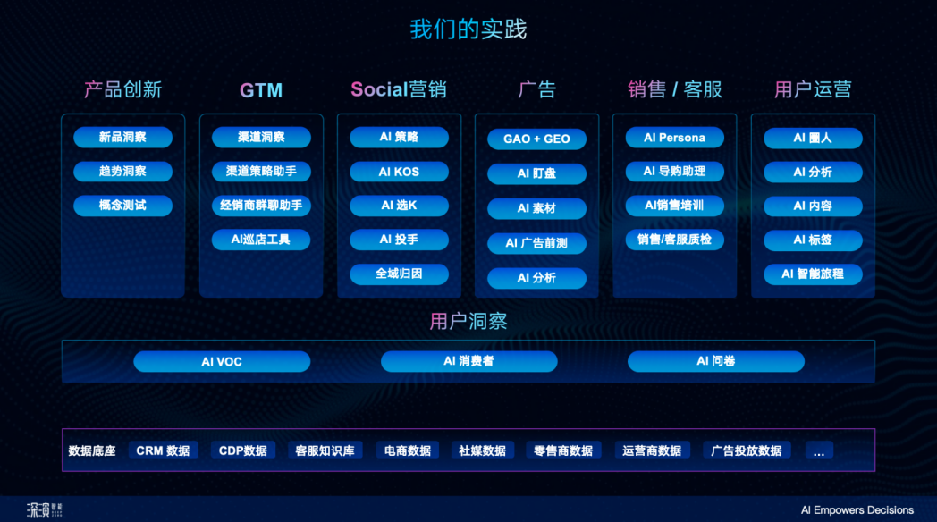 智慧快消:提供快消决策智能解决方案,包括科学种草评估(K参谋)、全域投放优化、会员精细化运营等,驱动生意增长。